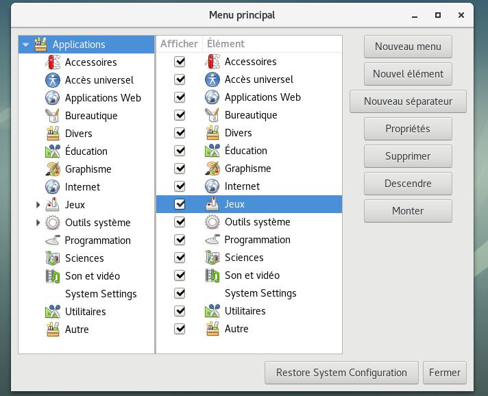 Alacarte – Paramétrer le Menu Principal DEBIANPar PJM / 7 décembre 2017 Paramétrage du menu principal Debian Installation : apt-get install alacarte Execution et Paramétrage : Partager avec Facebook Twitter Linkedin Whatsapp Email Messenger Print
