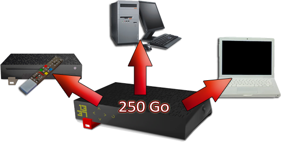 La Freebox v6 possède un boîtier serveur (comme la v5), équipé d’un disque dur de 250 Go. Montage via Samba