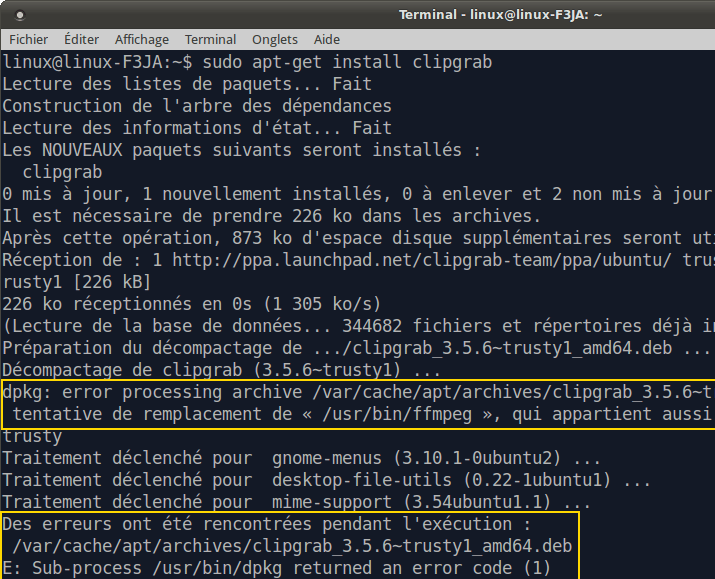 Cette erreur apparaît lors : d’une installation incomplète d’une installation ou mise à jour interrompue par vous ? (CTRL-C sauvage