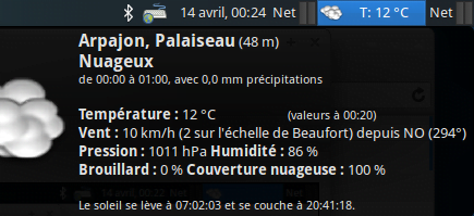 Pour avoir la météo instantannée et à 5 jour, installer le plugin xfce : # sudo apt-get install xfce4-weather-plugin clic