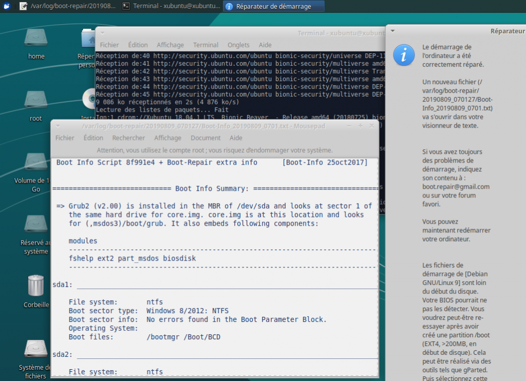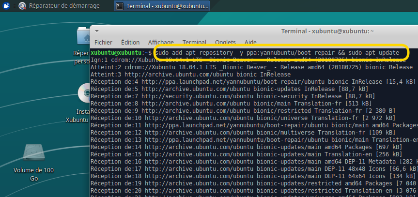 : Lancer boot-repair à partir d’un boot linux (session Live) sur clé USB ou CD