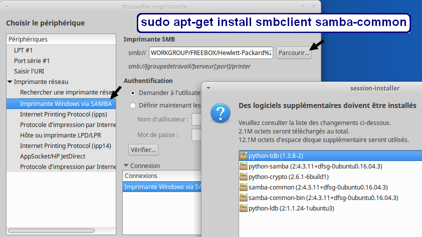 NB: Xubuntu 16.04 installe tous les pilotes manquants lors de la recherche via Samba !