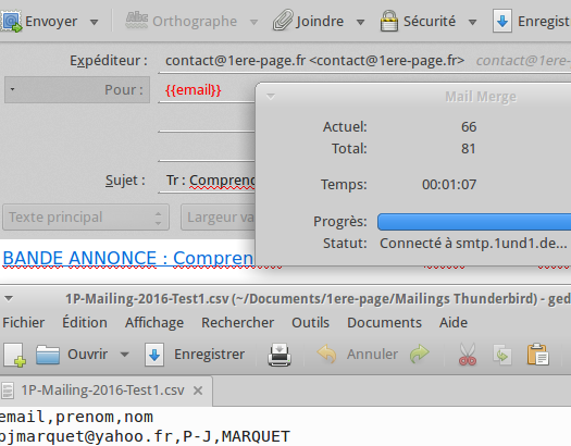3) Envoi d’un Mailing (plus méthodique) en mode CSV