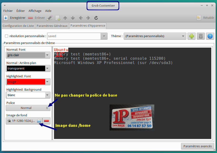 Pour désinstaller Grub Customizer : sudo apt remove grub-customizer