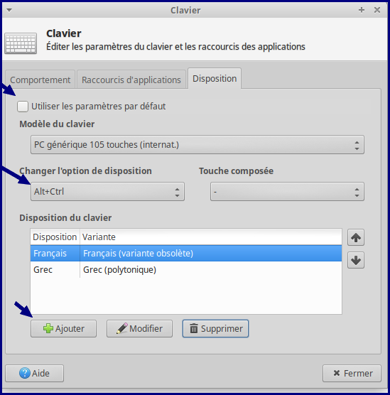 Après avoir effectué ces étapes, vous pourrez commuter la langue du clavier en utilisant un raccourci clavier prédéfini. Par défaut, le raccourci pour commuter la langue du clavier dans XFCE est généralement « Alt + Maj ».