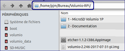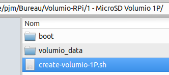 4) Copier le contenu de /boot + /volumio_data (fichiers sur PC PJM-1P) avec le programme create-volumio-1P.sh