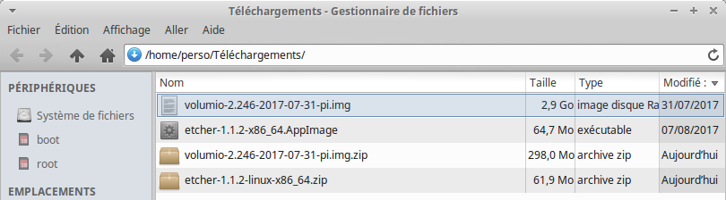 avec le fichier .img avec le programme etcher-1.*.AppImage (prog Linux en version portable) :