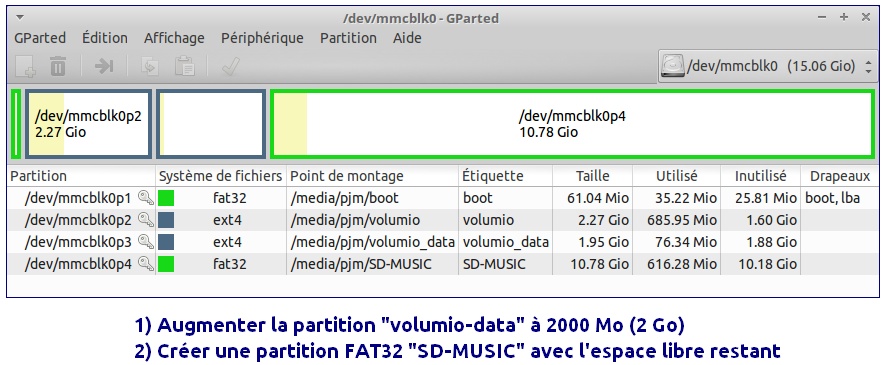 pour créer une partition pour stocker des fichiers musicaux : SD-MUSIC