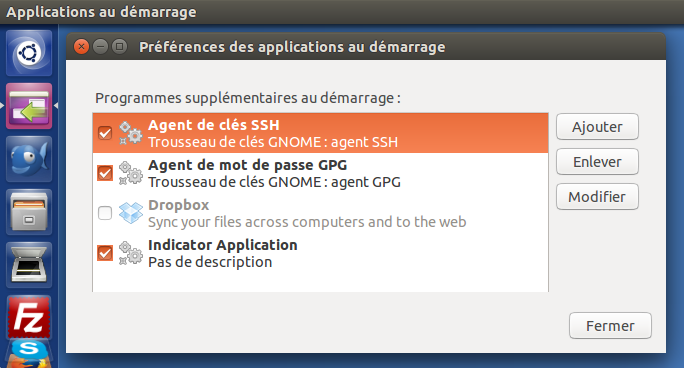 Lancer ‘Applications au démarrage’ pour voir et stopper certains démarrages automatiques d’applications (Dropbox, Skype, …)