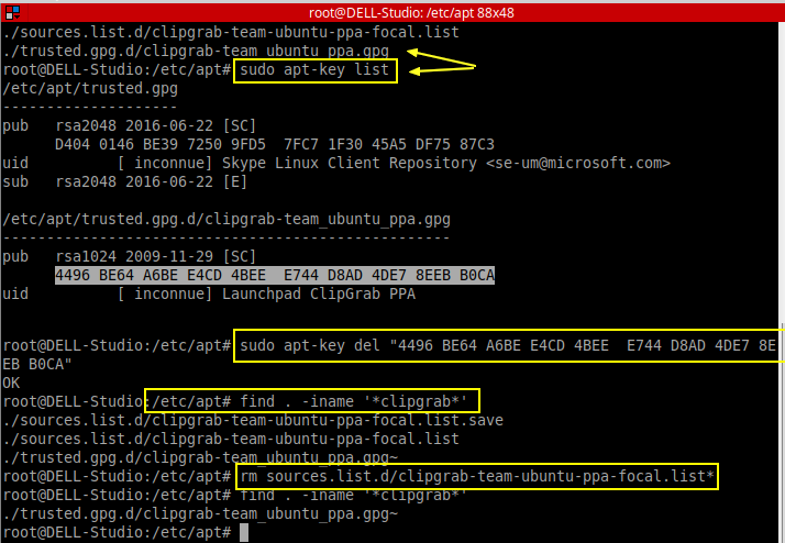 Exemple : désinstallation de ClipGrab : application + clé GPG