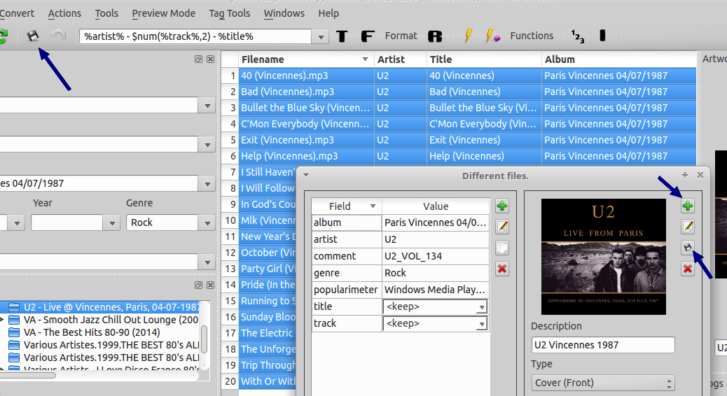 – Clic sur l’icone disquette / sauver dans la barre du menu principal pour sauver le tag dans tous les fichiers