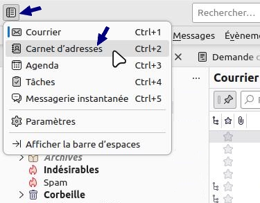- Clic sur icone en haut à gauche > Carnet d’adresses
